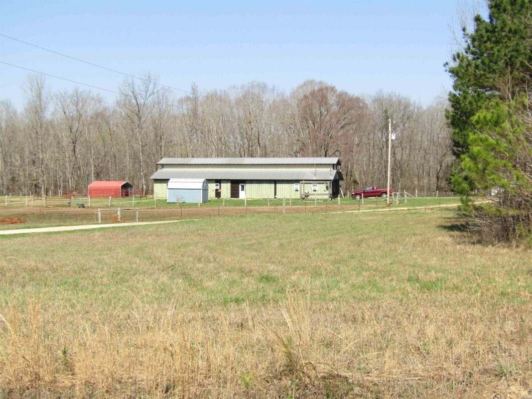What a unique find! 26 acres with a magnificent horse-barndominium. Two creeks and lots of wildlife on this property. Appx 6 acres of woods and 20 acres cleared. Owner has current survey. Living quarters has appx. 700 SF with kitchen (dishwasher, refrigerator, stove), bath, laundry, den, and bedroom. The barn is 40×80 with 12′ on each side and 16′ center concrete aisle. It’s built of oak – inside and outside with a metal roof. It has seven stalls with plumbing, electrical, swing-out feeders, swing-out watering bucket, and fan in each. Separate tack room and separate feed room with laundry hookup. Comes with a two-stall run-in shed and separate wash rack.